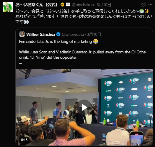 | … | 577無念Nameとしあき26/03/14(土)10:43:00 ID:NgIa.6O2No.1393714648+>タティスJr.はおーいお茶を手にしてぼくのスポンサーにもなってよと会見で言ったからね |