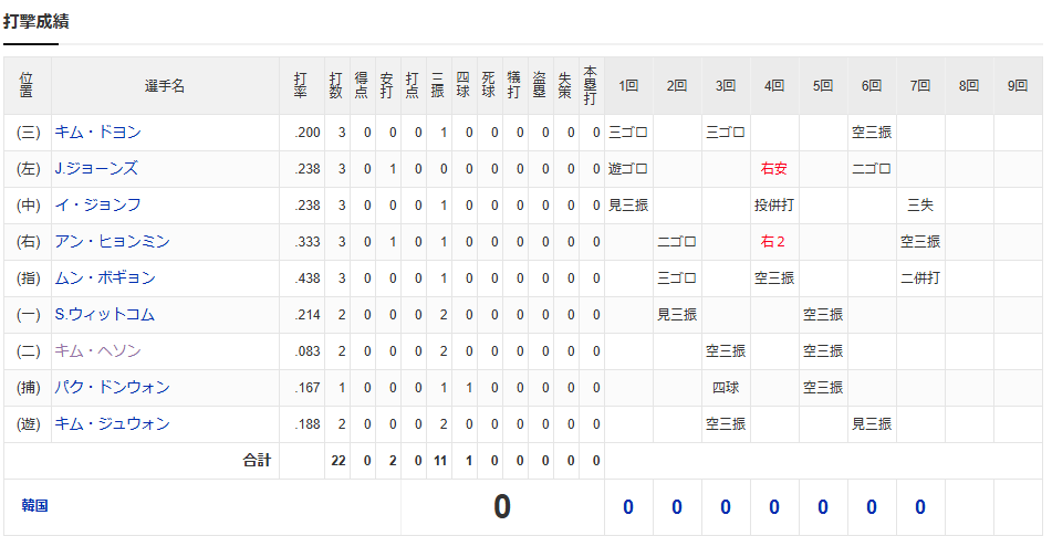 韓国0−7ドミニカ