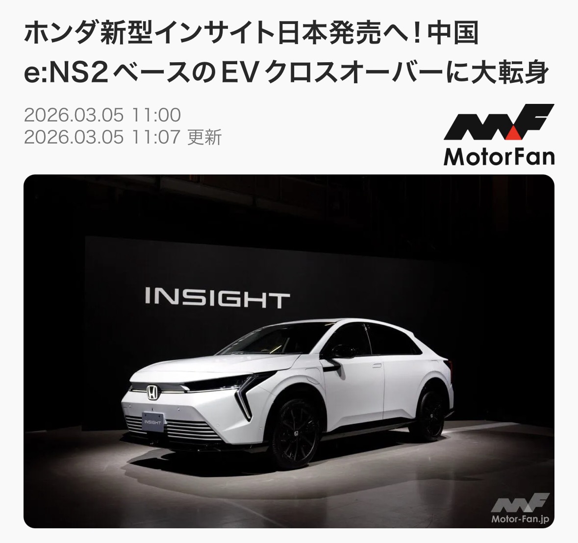| … | 106無念Nameとしあき26/03/14(土)12:45:26No.1393737760+ 1773459926135.jpg-(176775 B) >>発売前にいきなり大義名分を失った新型インサイトくん |