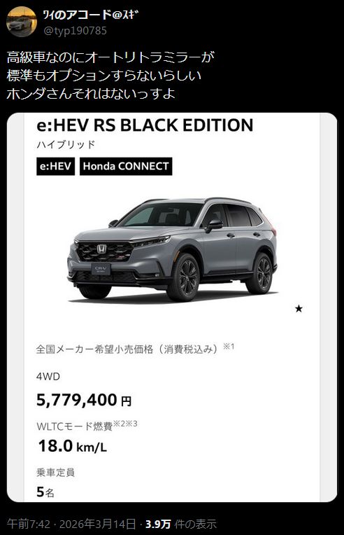 | … | 160無念Nameとしあき26/03/14(土)13:11:38No.1393742706+オートリトラミラーなんてWR-Vにも付いてるのに… |