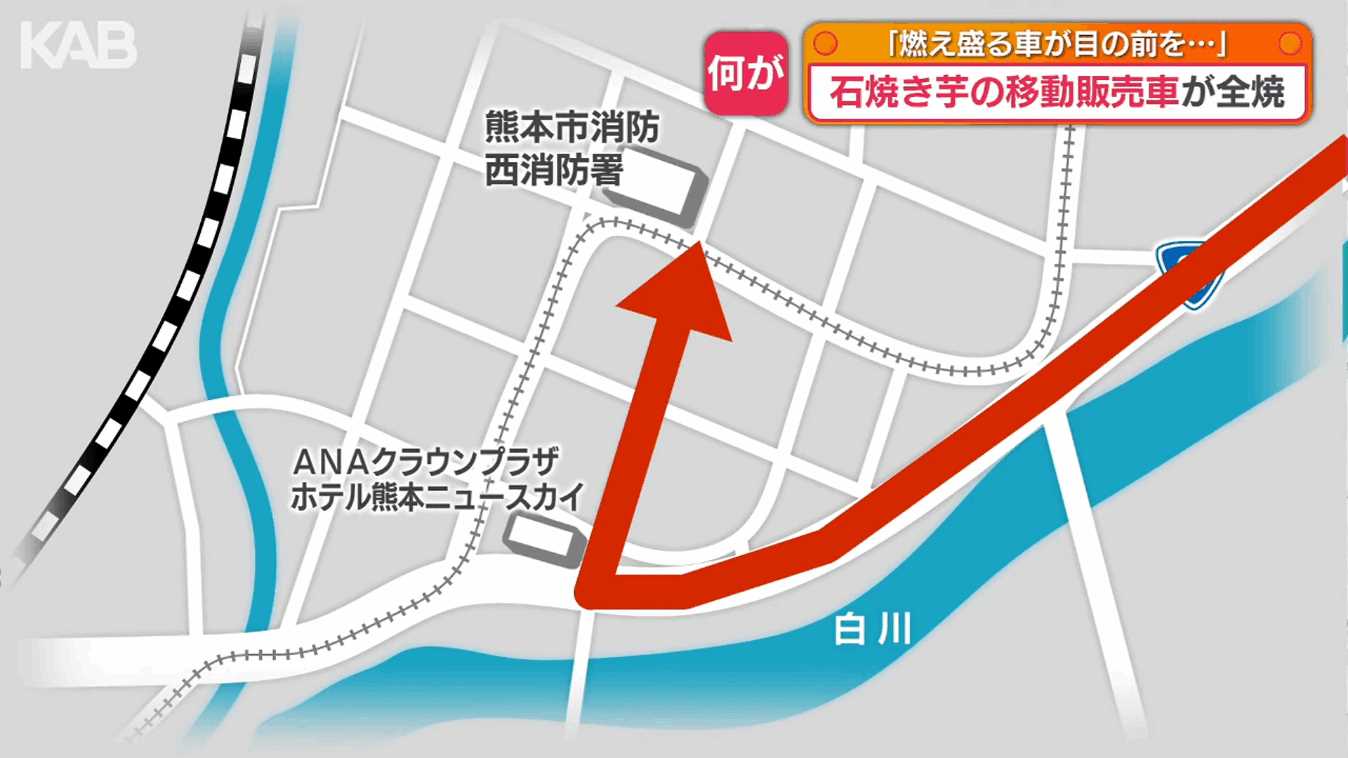 石焼き芋車が炎上しながら消防署に駆け込む【熊本】