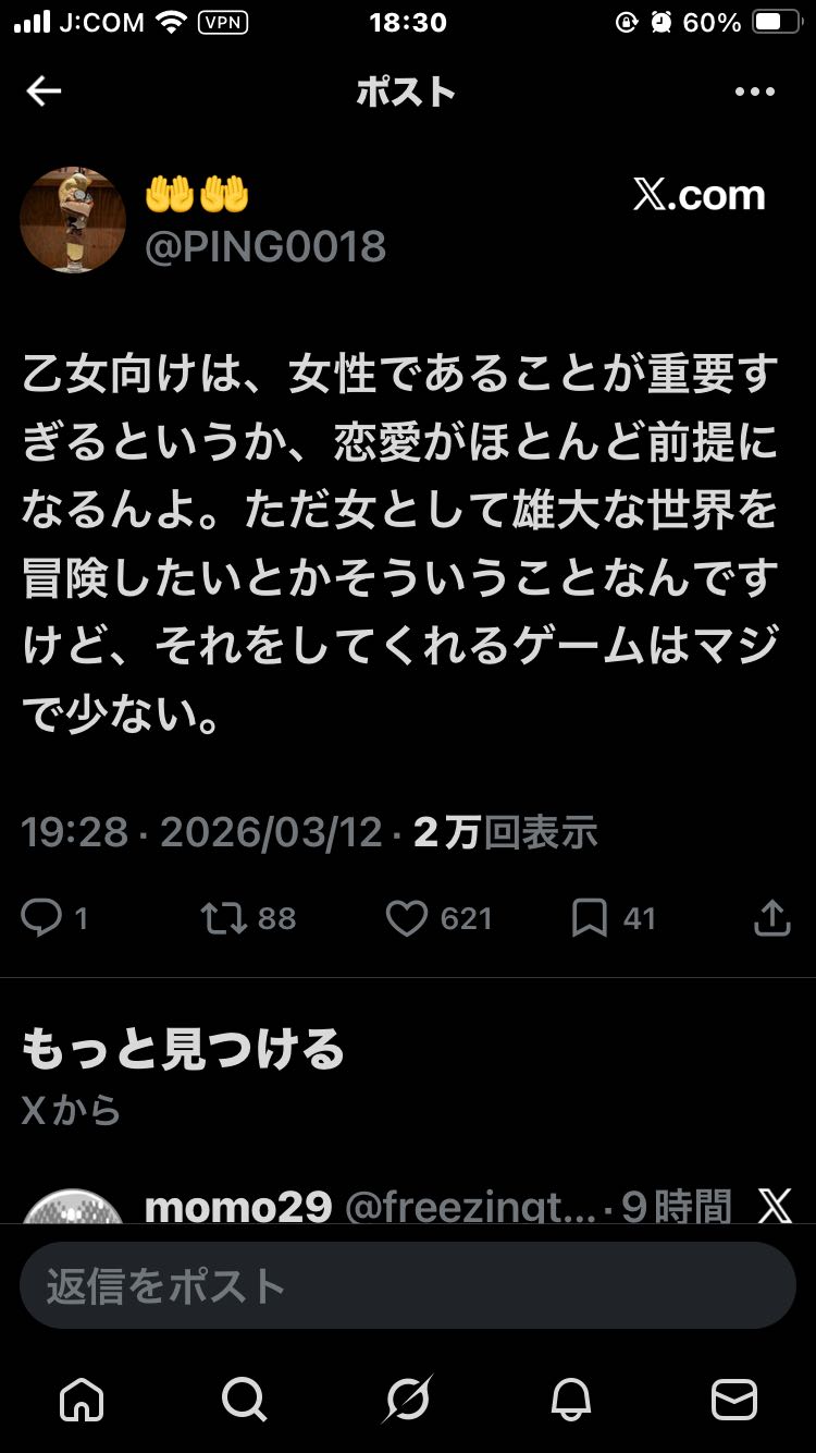 | … | 7無念Nameとしあき26/03/14(土)18:43:37No.1393810947そうだねx2乙女向けの対極って男向けでいうギャルゲーだよな |