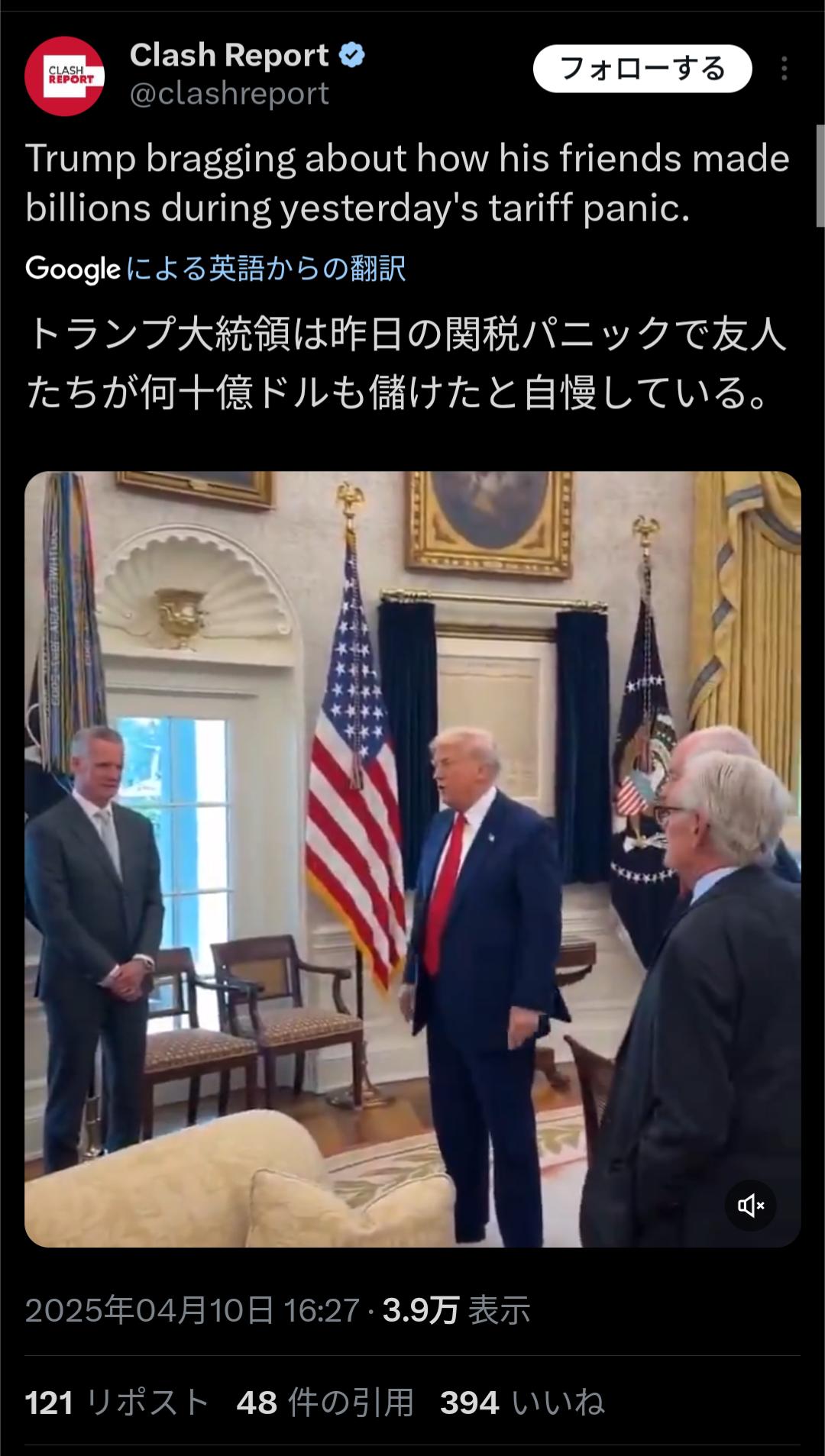 | … | 177無念Nameとしあき26/03/14(土)20:33:20No.1393839030+>>息子が石油関連株を攻撃の二日前に五千万ドル購入したらしいな |