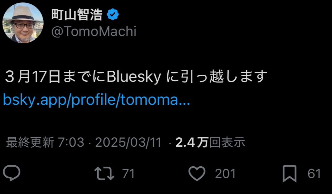 | … | 276無念Nameとしあき26/03/15(日)19:15:48No.1394095580+町山さんはBlueskyには馴染めないと思うよ |