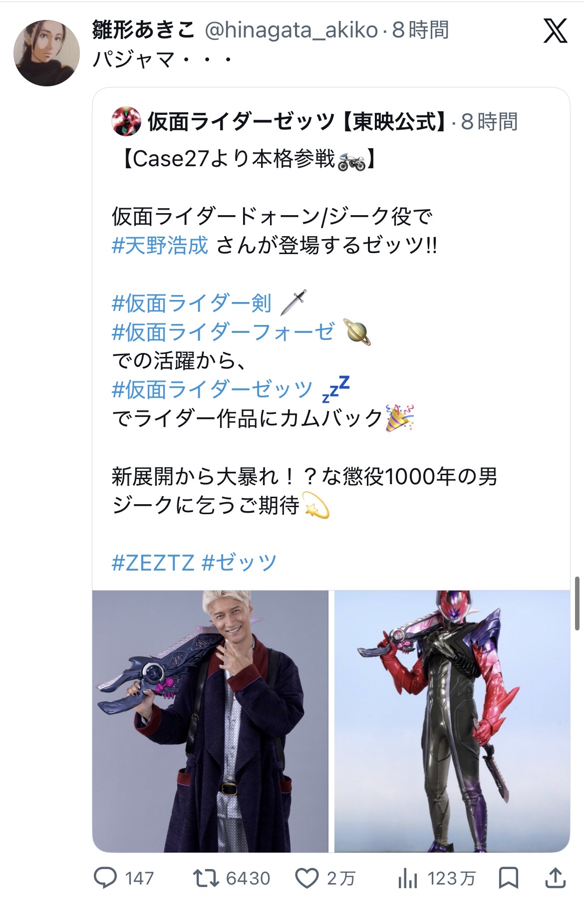 | … | 35無念Nameとしあき26/03/15(日)17:50:10No.1394074304+>としあきは行くゼッツ!!ぷち旅ライダーゼッツ見ないの? |
