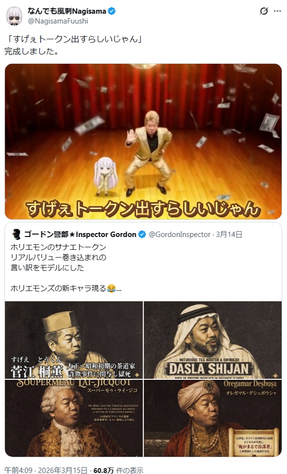 | … | 13無念Nameとしあき26/03/15(日)23:17:59No.1394164335+クオリティの高いモノは称賛してやるのが一流ですよホリエモン |