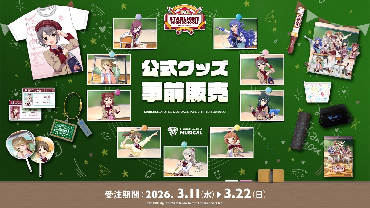 | … | 97無念Nameとしあき26/03/16(月)21:29:43 ID:HVVFK6ZYNo.1394344995+ 1773664183471.jpg-(181143 B) 【〜3月22日(日)】《公式グッズ事前販売》『CINDERELLA GIRLS MUSICAL STARLIGHT HIGH SCHOOL!』 |