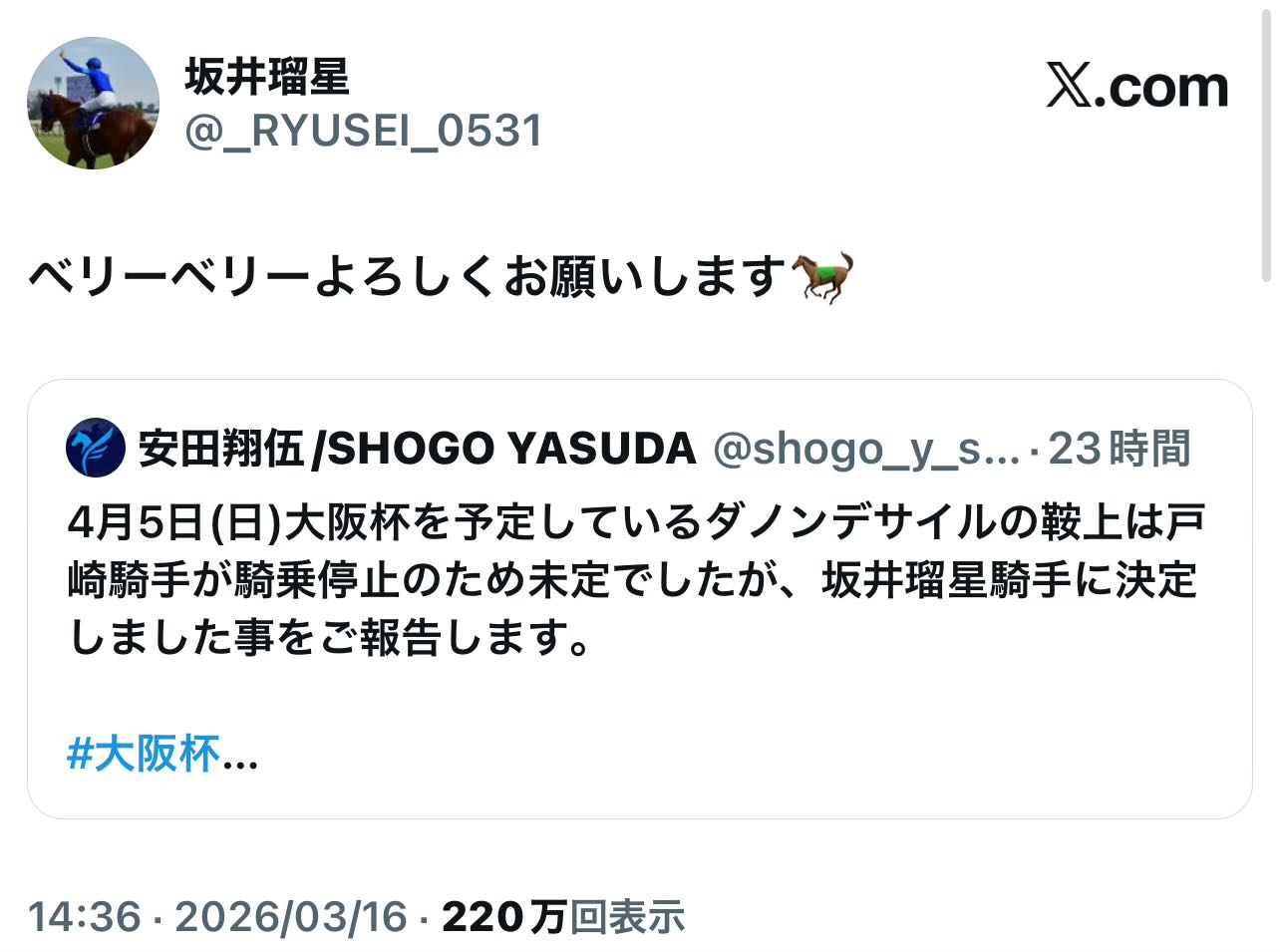 | … | 20無念Nameとしあき26/03/17(火)10:43:17No.1394432171+ 1773711797996.jpg-(166583 B) 大阪杯でベリベリホース!となった場合のリューセーはこうなるぽんか |
