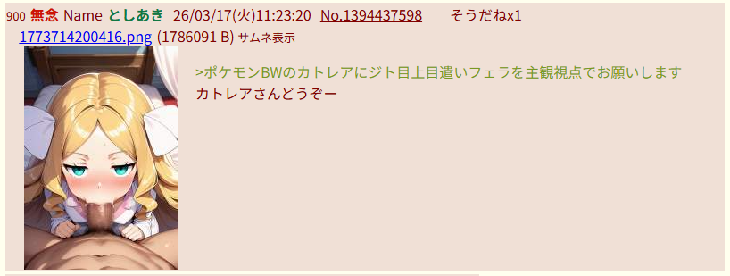 | … | 407無念Nameとしあき26/03/17(火)14:11:40No.1394466367+なんかシチュに熱意あるとしあきがNTR系ばっかで…すまんが趣味じゃないと表情とか構図の調整出来ないからさ… |
