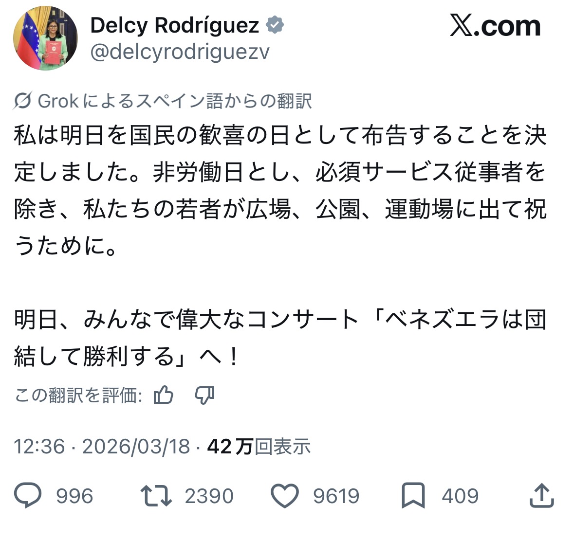 | … | 3無念Nameとしあき26/03/18(水)12:40:29No.1394662755そうだねx10マドゥロ大統領もニッコリ |