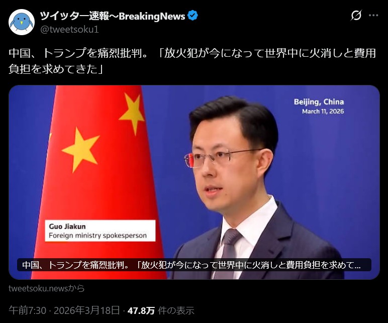 | … | 53無念Nameとしあき26/03/19(木)00:53:18No.1394812715そうだねx2中国に言われるってよっぽどやぞ |