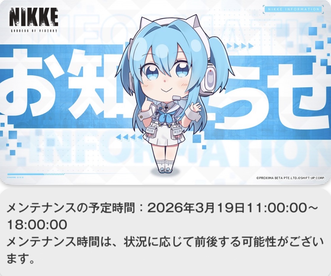 | … | 10無念Nameとしあき26/03/19(木)07:25:05No.1394833774そうだねx1>メンテナンスの予定時間:2026年3月19日11:00:00〜18:00:00 |