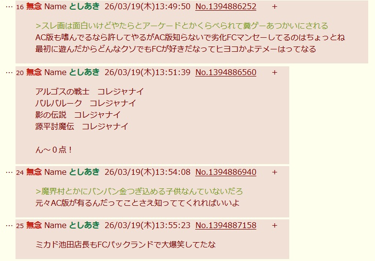 | … | 26無念Nameとしあき26/03/19(木)13:55:59No.1394887261+ 1773896159090.png-(6825 B) >最初に遊んだからどんなクソでもFCが好きだなってヒヨコかよテメーはってなる |