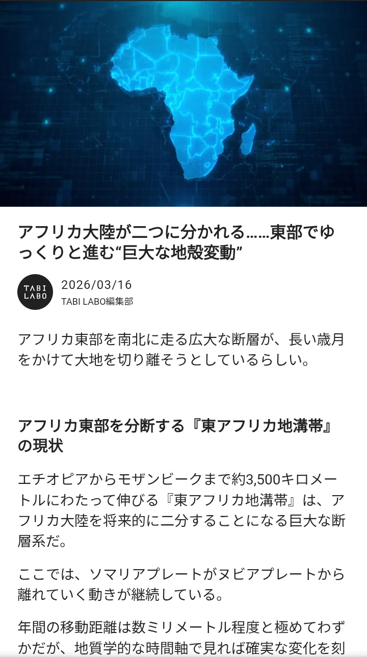 アフリカ大陸が将来二つに分かれるらしい