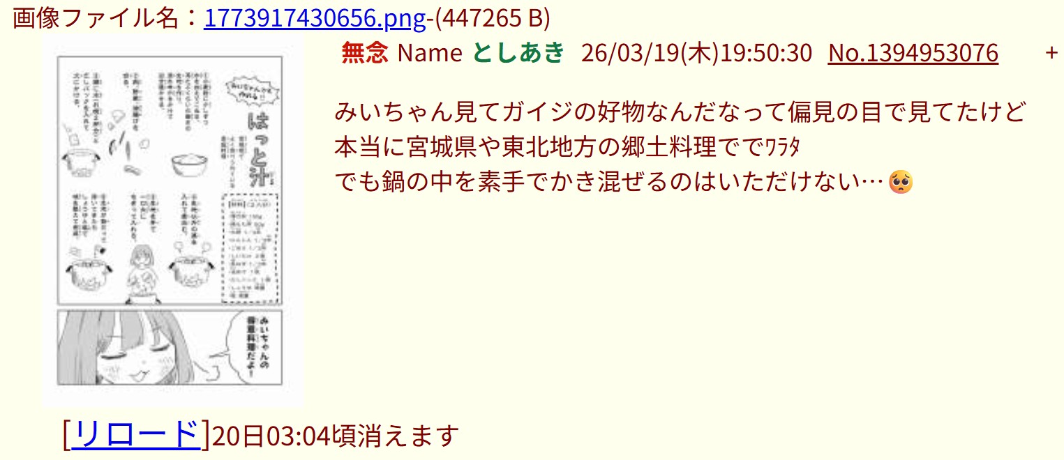 | … | 18無念Nameとしあき26/03/19(木)19:02:34No.1394941809そうだねx4>もう一つスレがあったけど消されたね |