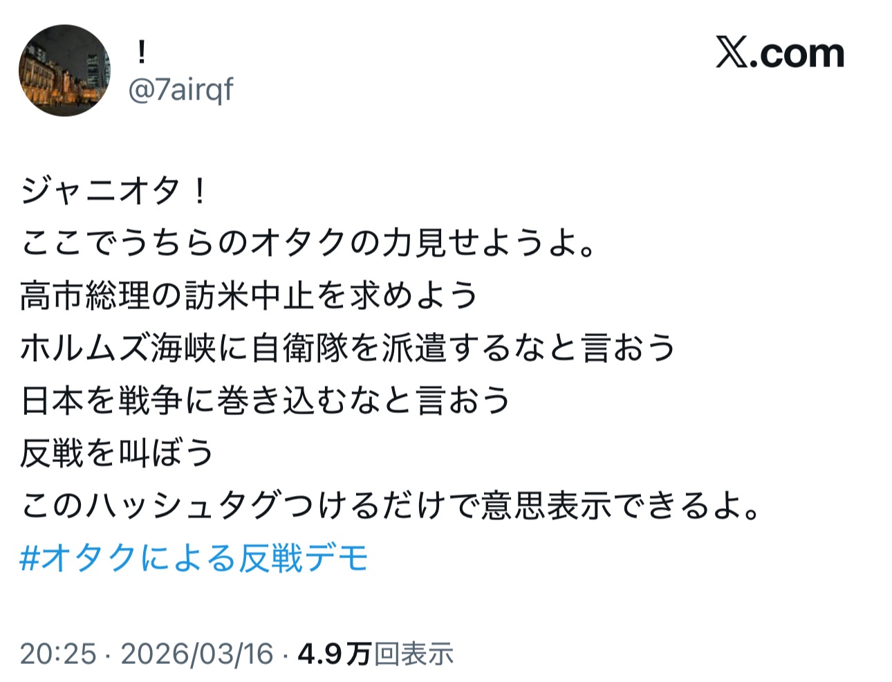 | … | 167無念Nameとしあき26/03/20(金)08:04:30No.1395054723そうだねx3オタクは左翼思想なの多いと思うよ |