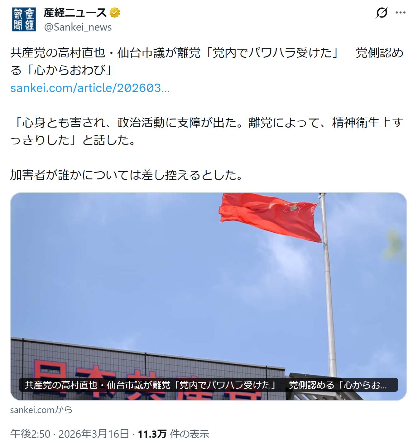 | … | 41無念Nameとしあき26/03/20(金)04:02:36No.1395041785そうだねx11人の心があったら共産党にならない |