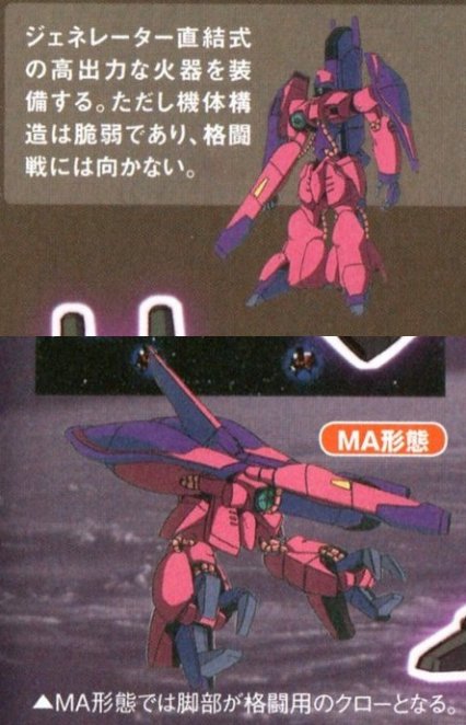 3回出撃したら空中分解するぞとまで鹵獲した機体を分析したエゥーゴ技師に言わしめた脆弱な機体とされている