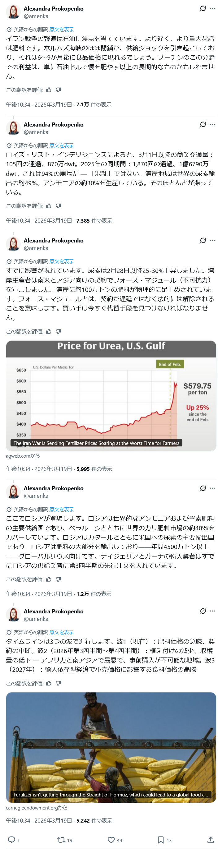 | … | 24無念Nameとしあき26/03/20(金)04:55:31No.1395043508+ 1773950131675.png-(205519 B) >石油ばっか言ってるけど肥料供給も中東に依存してるからこのままだと農業にも大打撃受けるぞとの論説 |