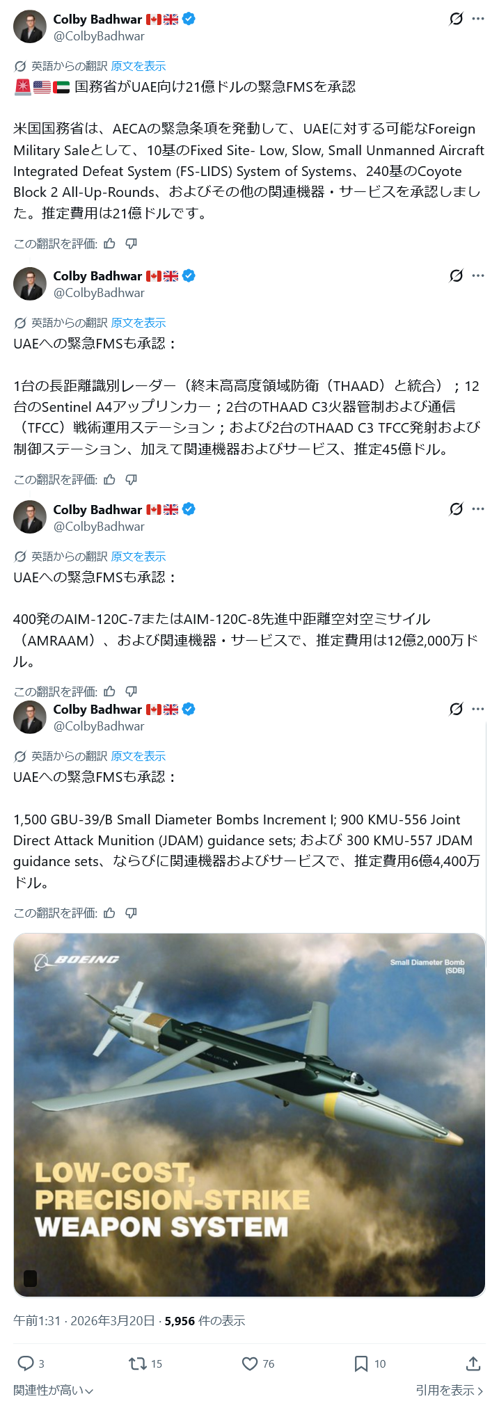 | … | 46無念Nameとしあき26/03/20(金)05:28:05No.1395044476+ 1773952085996.png-(610018 B) >あとアメリカがUAEにTHHADのレーダーやその他中東諸国に雑種なレーダーの緊急輸出の承認したってポスト |