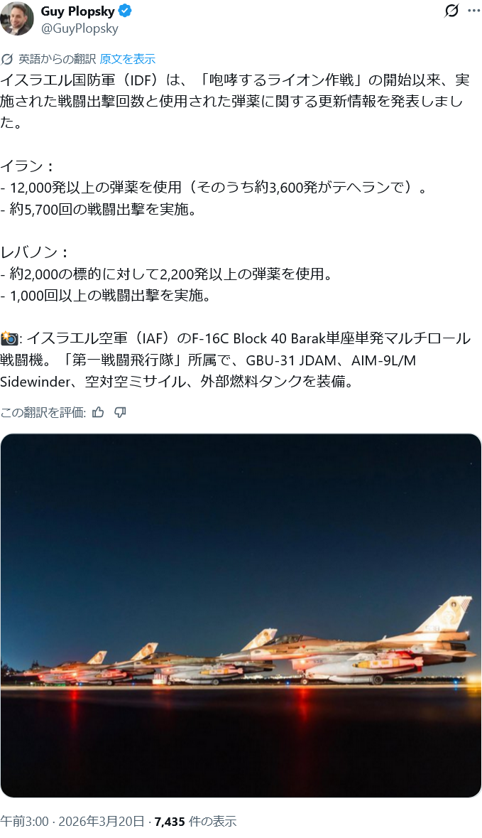 | … | 48無念Nameとしあき26/03/20(金)05:33:57No.1395044662+ 1773952437299.png-(440327 B) イスラエル空軍は6700ソーティくらいだと |