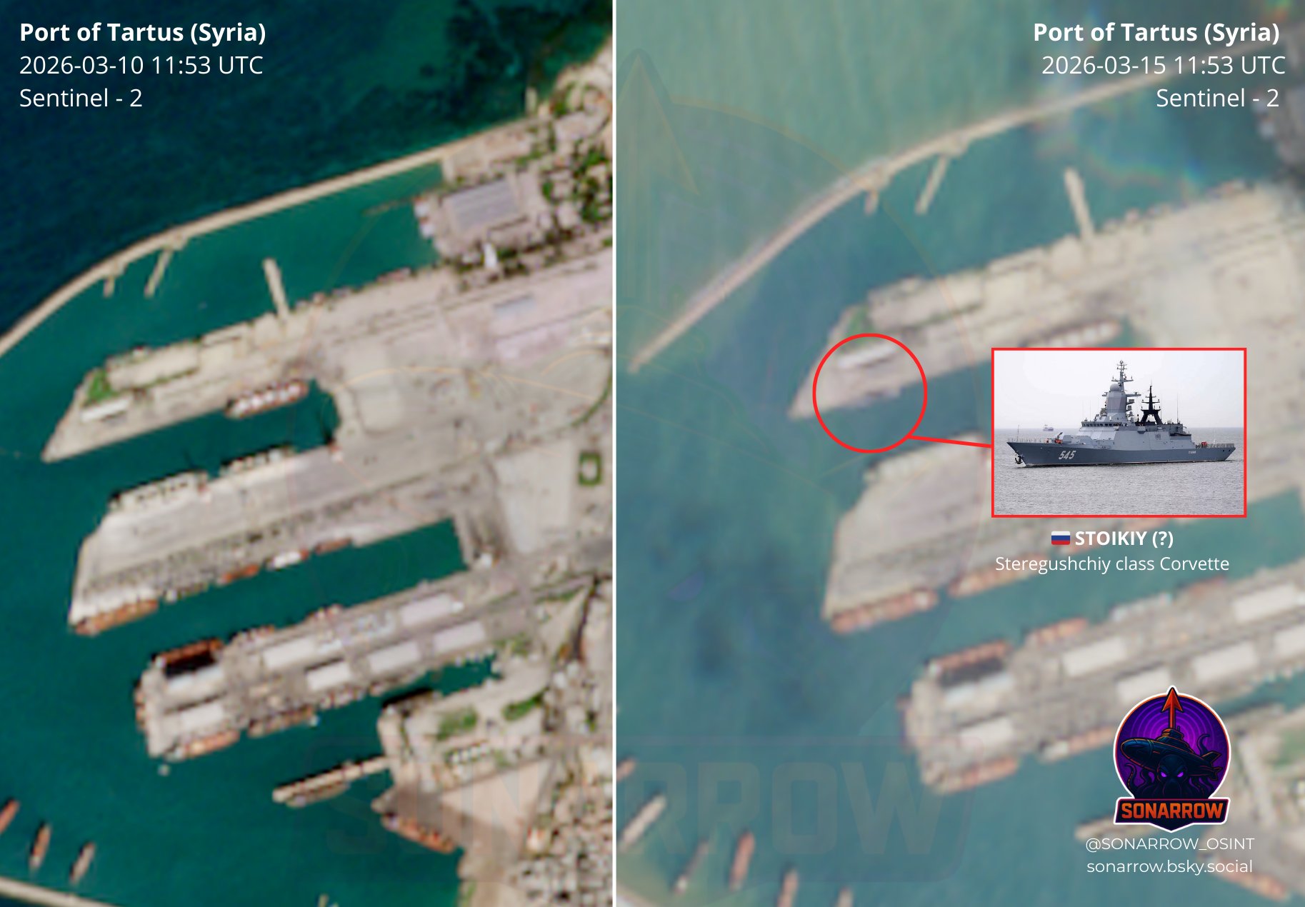 | … | 56無念Nameとしあき26/03/20(金)05:50:38No.1395045212そうだねx1 1773953438191.jpg-(224160 B) イラン海軍と合同演習して紛争勃発後足取りが途絶えてたロシアのコルベットStoikiyがシリアのタルトゥースに避難したのでは?との見解 |