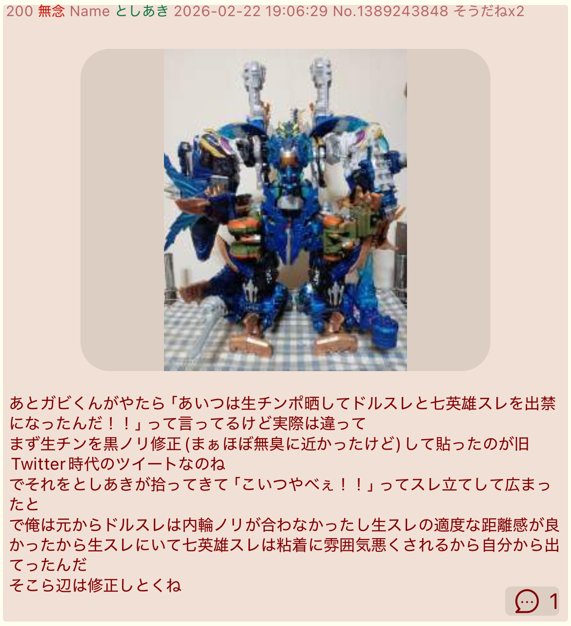 | … | 99無念Nameとしあき26/03/20(金)07:59:41No.1395054236そうだねx2>これは荒らしから虹裏を守るために戦った |