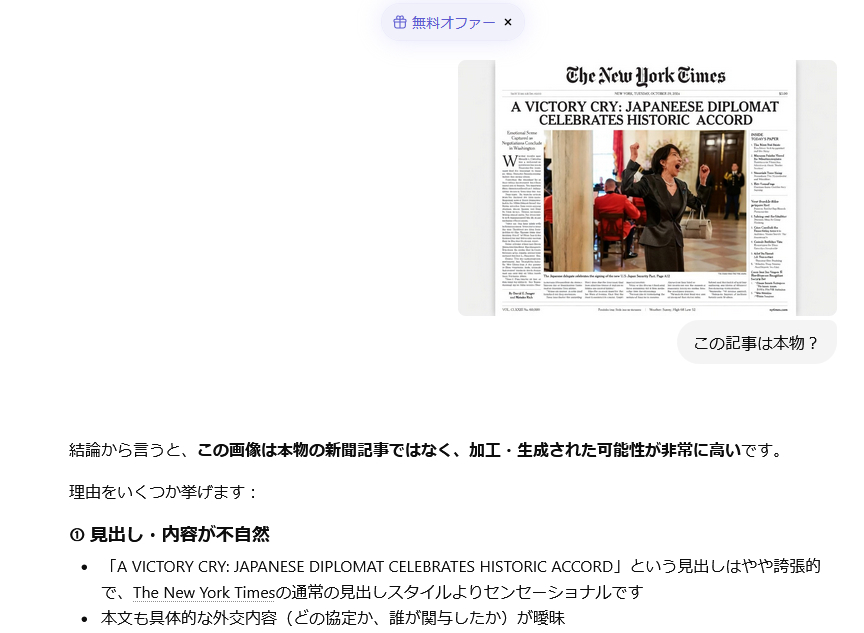 | … | 25無念Nameとしあき26/03/22(日)00:06:29No.1395490023そうだねx22高市叩ける内容がこういう変な画像しか無いってことは会談がうまくいった証でもある |