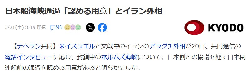 | … | 401無念Nameとしあき26/03/22(日)01:21:19No.1395503497+>せっかくイランに海峡通過の用意があるというのに |