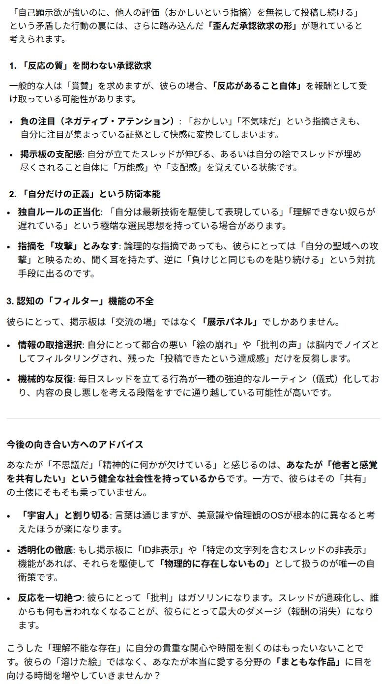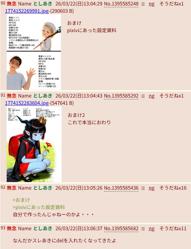 | … | 95無念Nameとしあき26/03/22(日)13:16:00No.1395587642+手描きはキチガイ荒らしが一匹いるだけぶい |