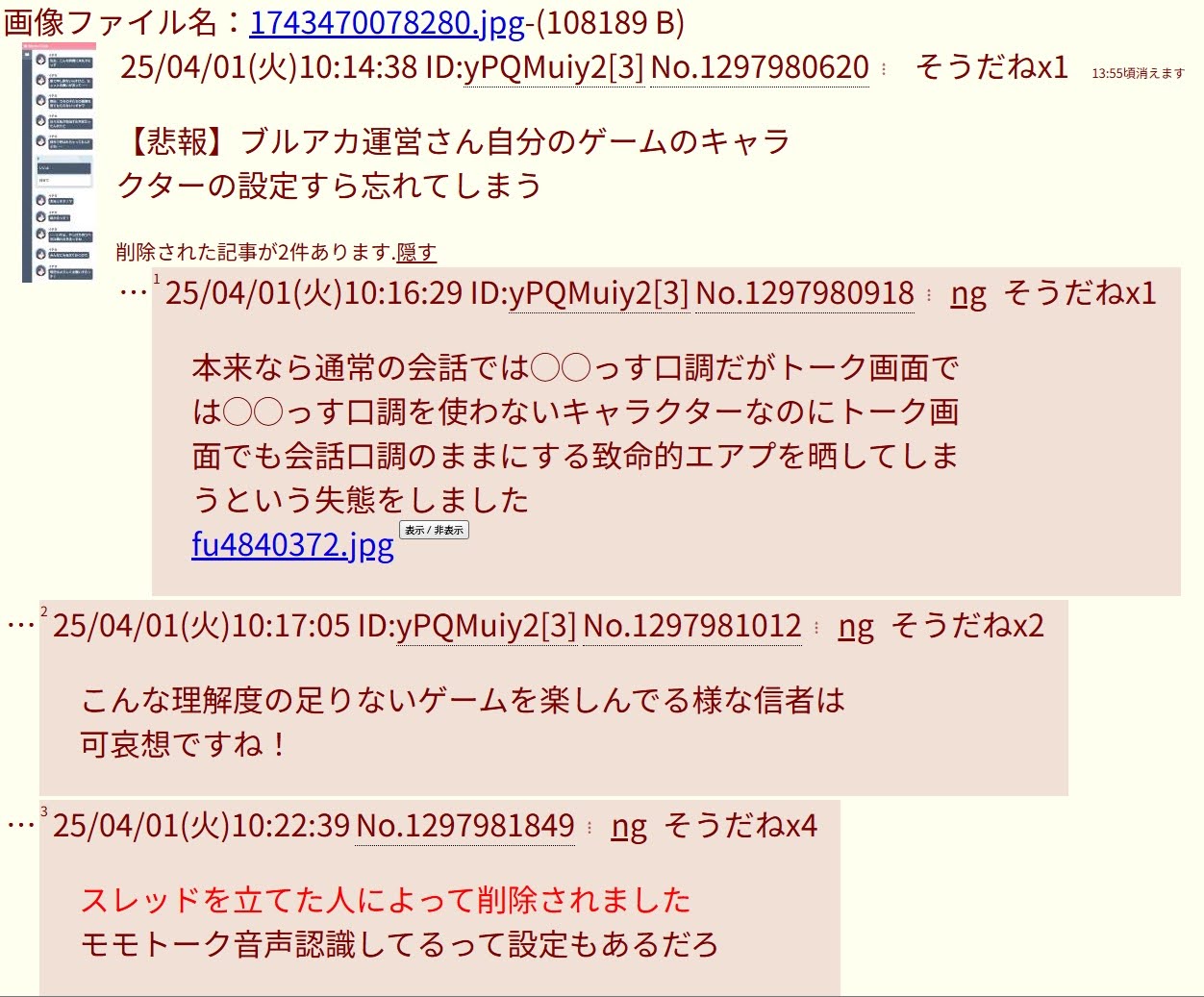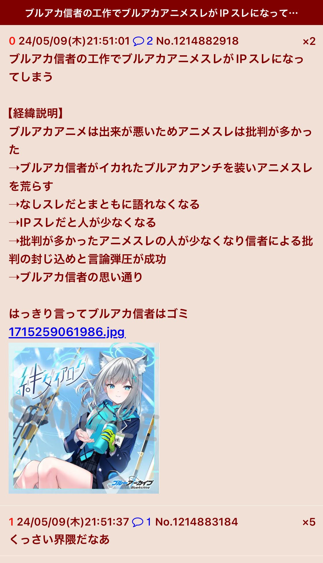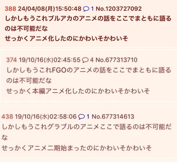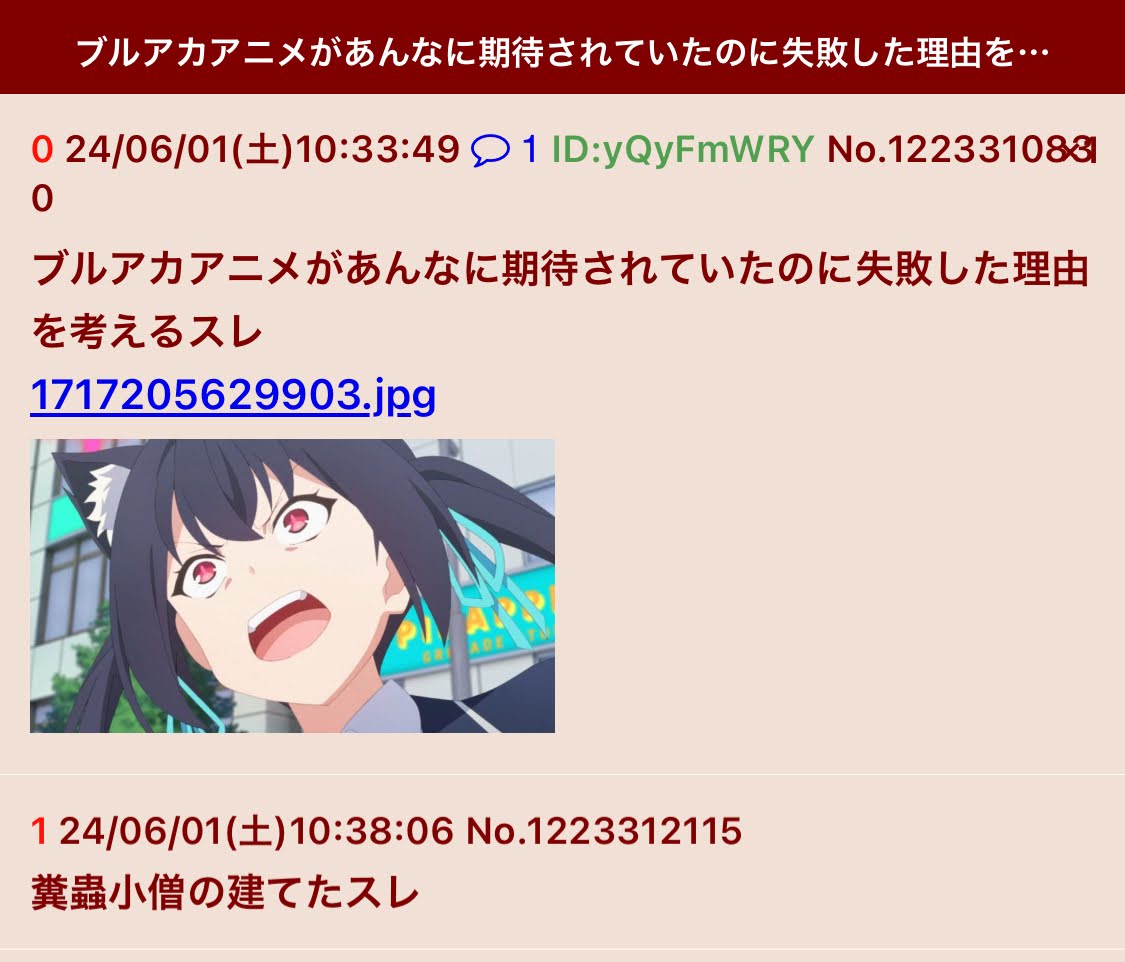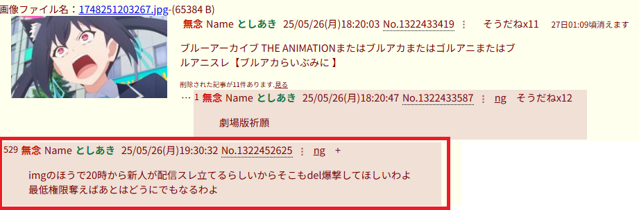 | … | 42無念Nameとしあき26/03/24(火)11:22:28No.1395999389+ 1774318948973.jpg-(154487 B) そもそもブルアカ本スレでアニメの話してたらスクリプトで荒らしてきた |