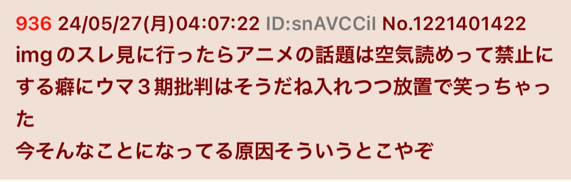 | … | 233無念Nameとしあき26/03/24(火)12:36:49No.1396010173+>管理をしっかりすれば荒らされないのはウマ娘スレで証明されてる |