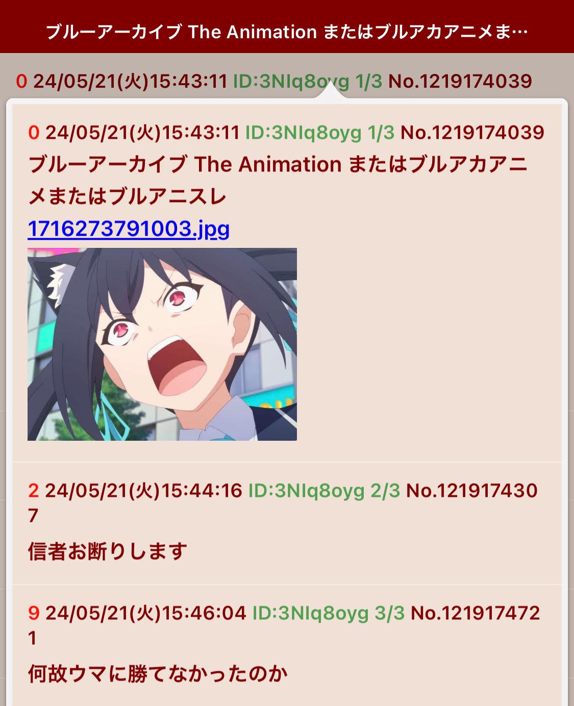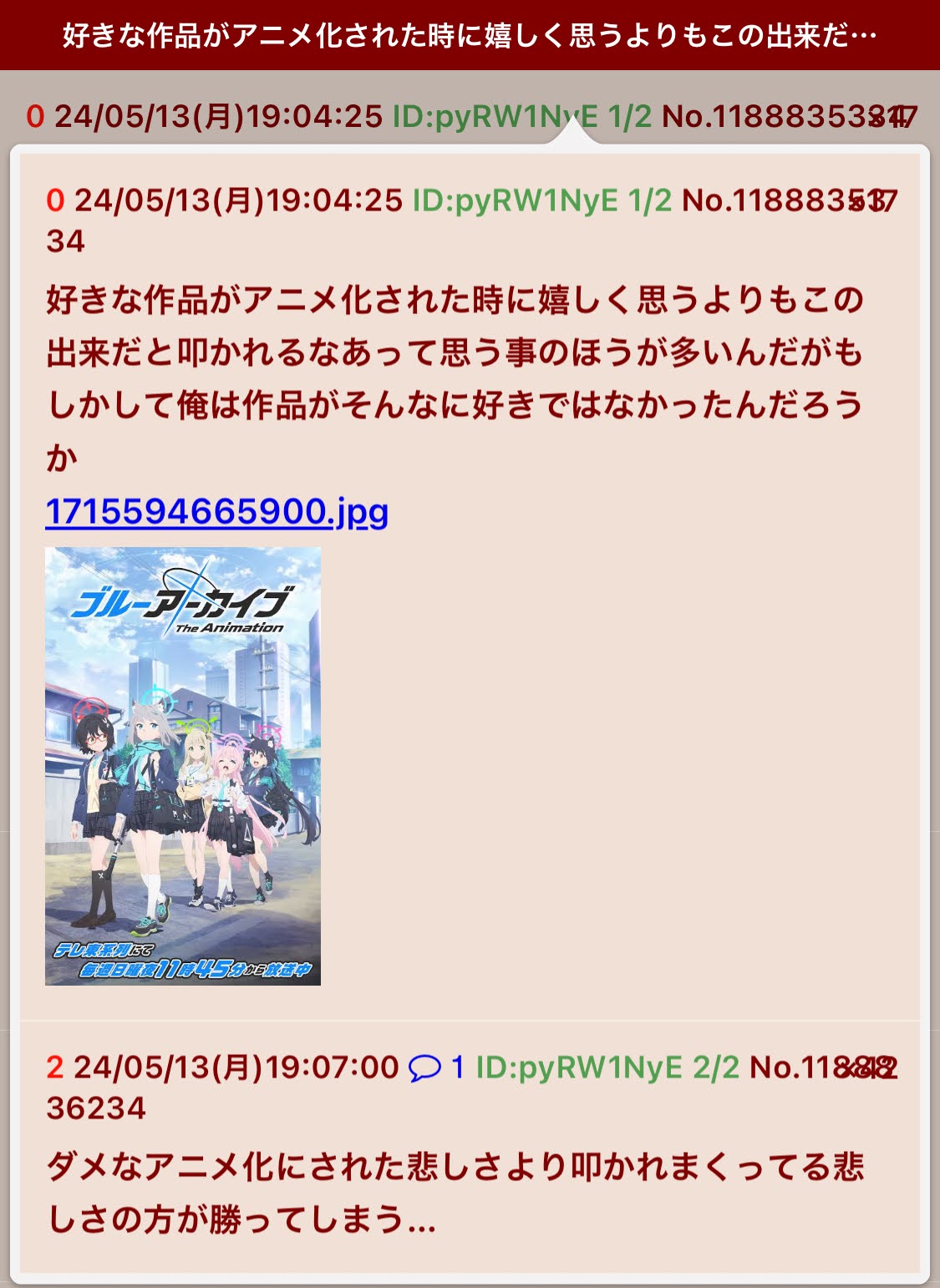 | … | 72無念Nameとしあき26/03/24(火)11:32:33No.1396000655+ 1774319553167.jpg-(197030 B) 荒らしが湧くまでは平和に語れていたブルアカアニメ |