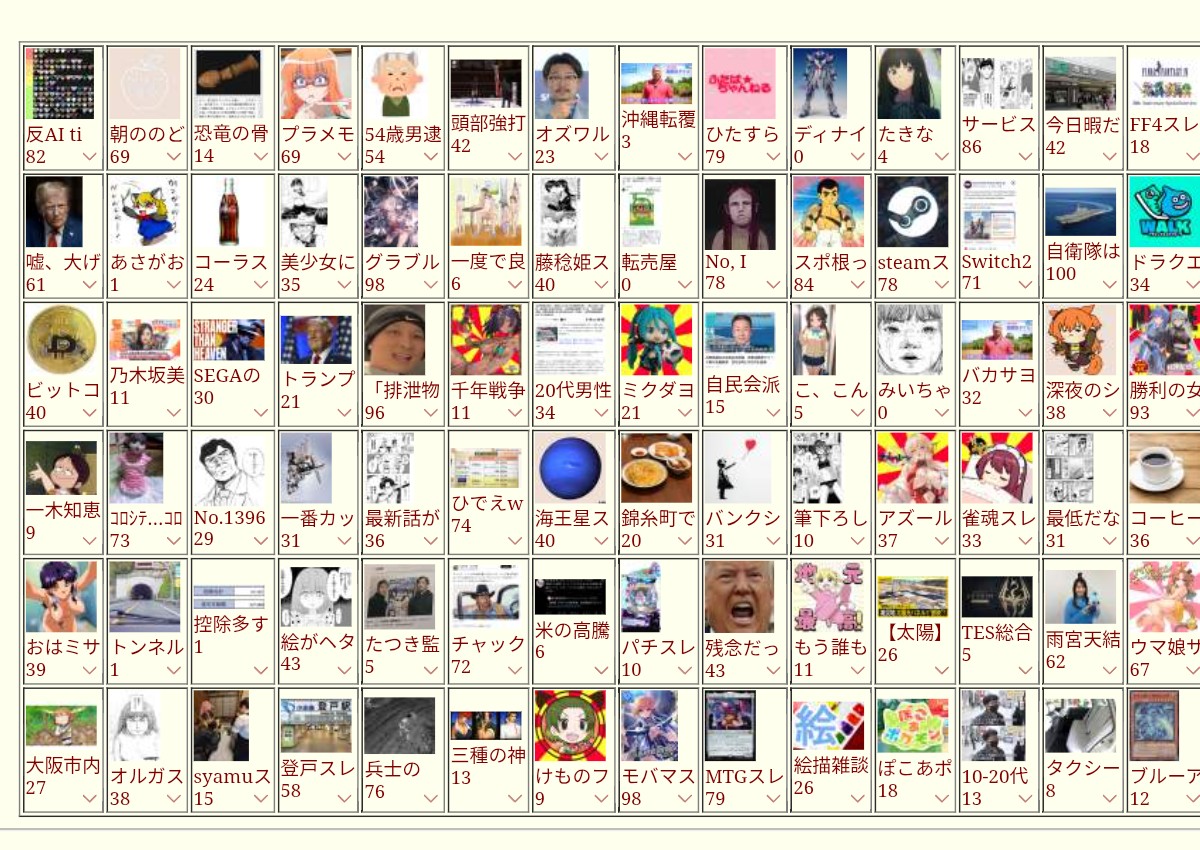 | … | 221無念Nameとしあき26/03/24(火)12:29:25No.1396008720+>絵を描くとしあき達はいなくなったね |