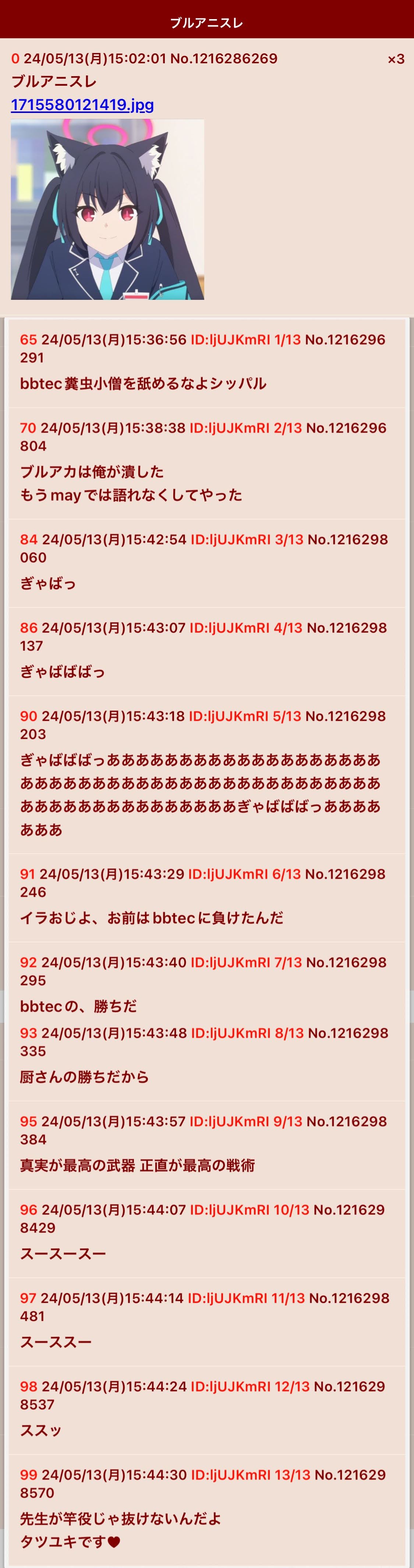 | … | 32無念Nameとしあき26/03/24(火)11:14:01No.1395998360+>ブルアニスレは元々外部でずっと粘着してた連中の巣だから気にしたら負け |