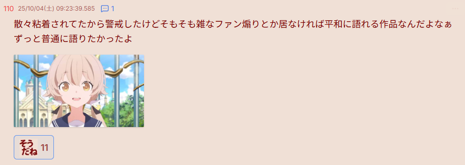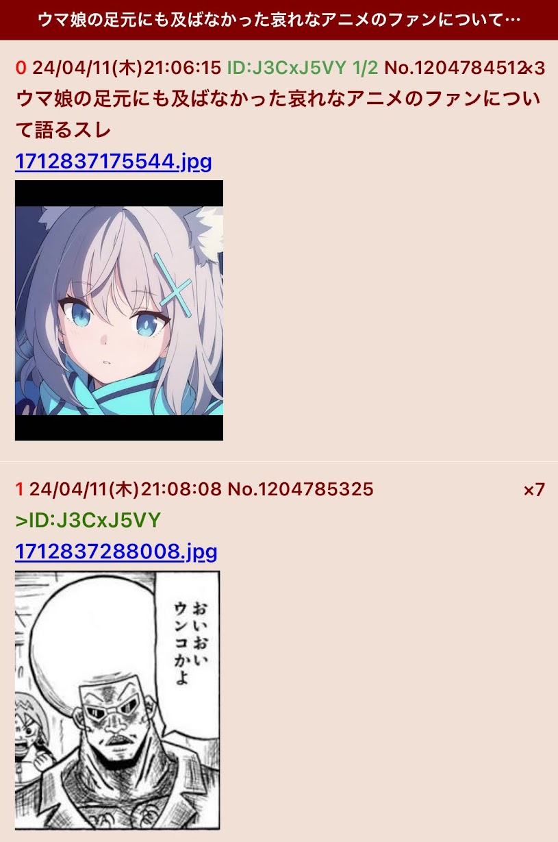 | … | 180無念Nameとしあき26/03/24(火)12:15:23No.1396006171+>>ブルアニスレ住人みたいな作品を叩かないと語れないようなのはBANされるから皆猫かぶって仲良くしてるのよ |