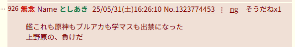 | … | 182無念Nameとしあき26/03/24(火)12:15:27No.1396006190そうだねx3>そもそもイラおじお前ブルアカやってねぇだろ |