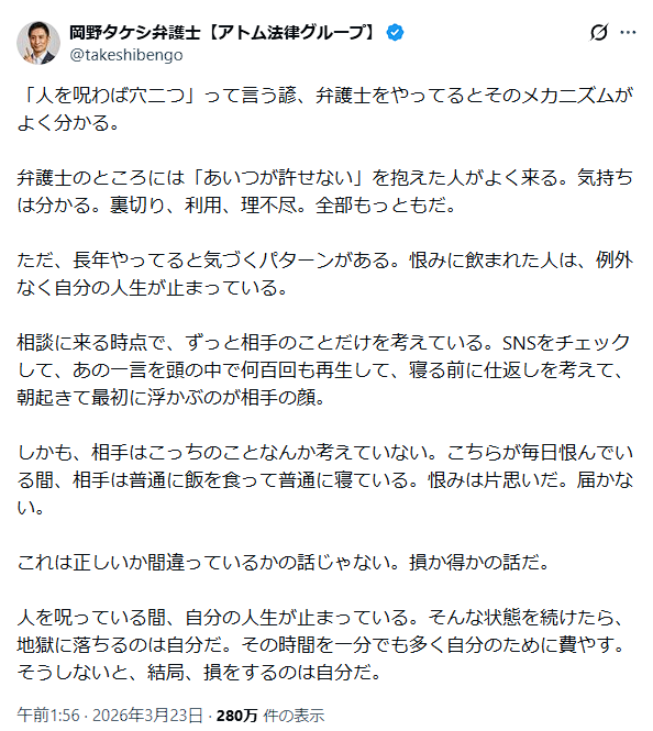 | … | 60無念Nameとしあき26/03/24(火)11:29:55No.1396000334そうだねx1何かと戦う人も本当に増えたな |