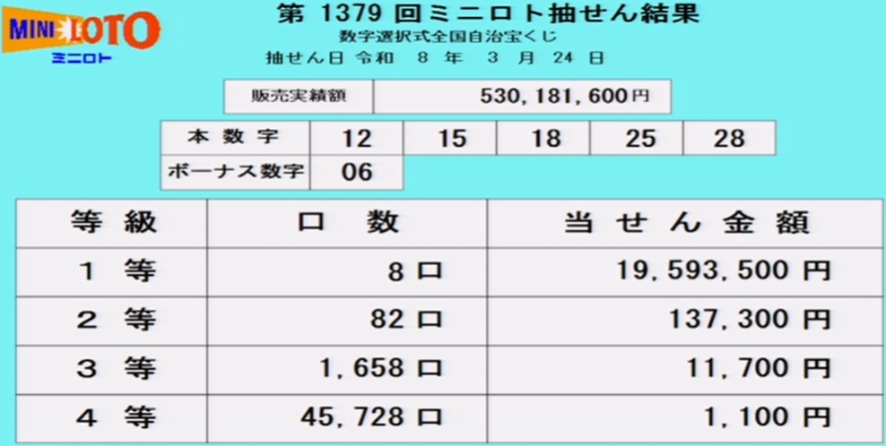 | … | 26無念Nameとしあき26/03/24(火)18:56:08No.1396068473そうだねx7 1774346168940.jpg-(98218 B) ミニロト結果 |