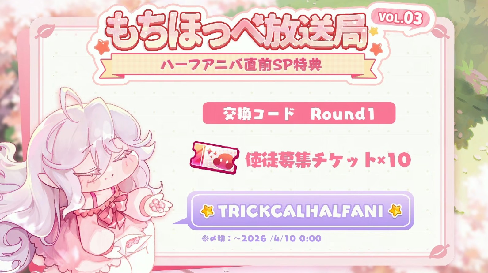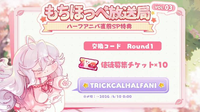| … | 71無念Nameとしあき26/03/25(水)18:06:29 ID:ZlR1tfo2No.1396288035+>もちほっぺも半周年ですよぉ! |