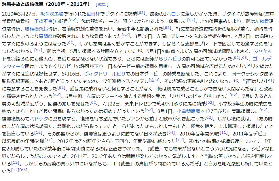 | … | 852無念Nameとしあき26/03/25(水)19:45:03No.1396310470そうだねx1 1774435503516.png-(144721 B) 武はこの時期の成績低迷について、「年間200勝していたのが数年後に年間50勝になるのは正直きつかった。『武豊』でも結果が出ないとこういう状況になる。シビアな世界だからしょうがないんですが、2011年、2012年あたりは競馬が楽しくなかった気がします」 |
