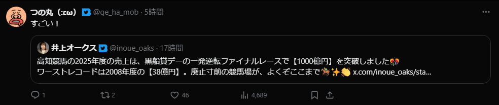 | … | 840無念Nameとしあき26/03/25(水)19:43:58No.1396310193+G1級は獲れてるのもおかしい… |