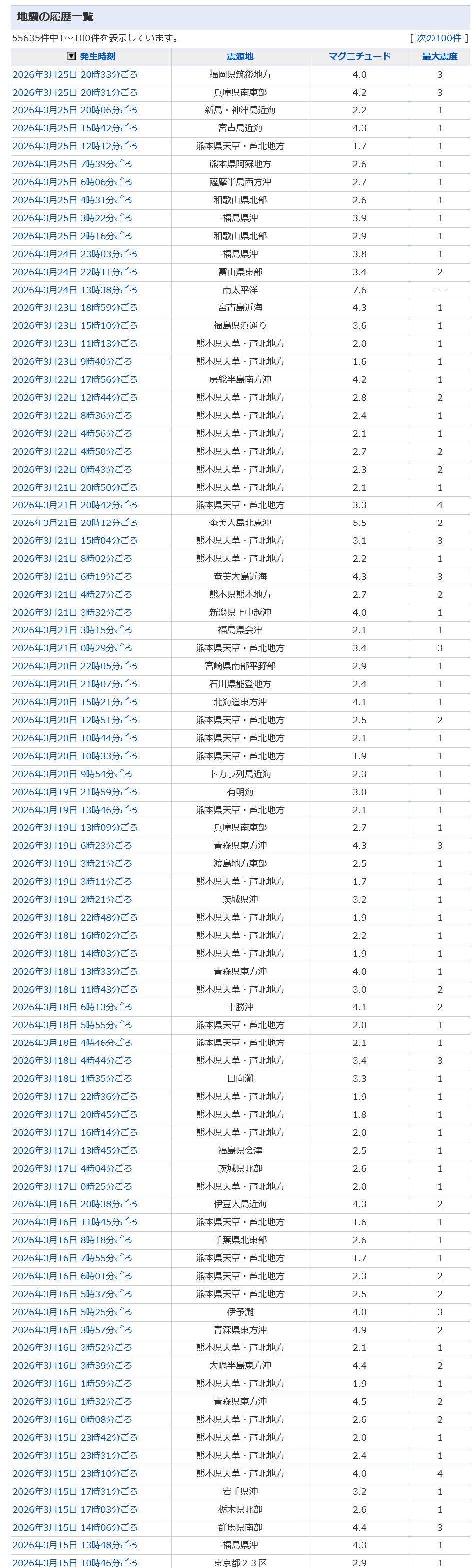 | … | 16無念Nameとしあき26/03/26(木)00:32:03No.1396380412+本当にヤバい噴火が起きるなら直前にM6クラスの割とデカい地震がこの付近で発生するはず |