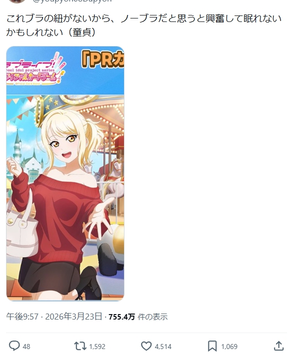 | … | 9無念Nameとしあき26/03/26(木)06:57:49No.1396400987そうだねx4(童貞)って言ってるしそういうネタなんじゃね |