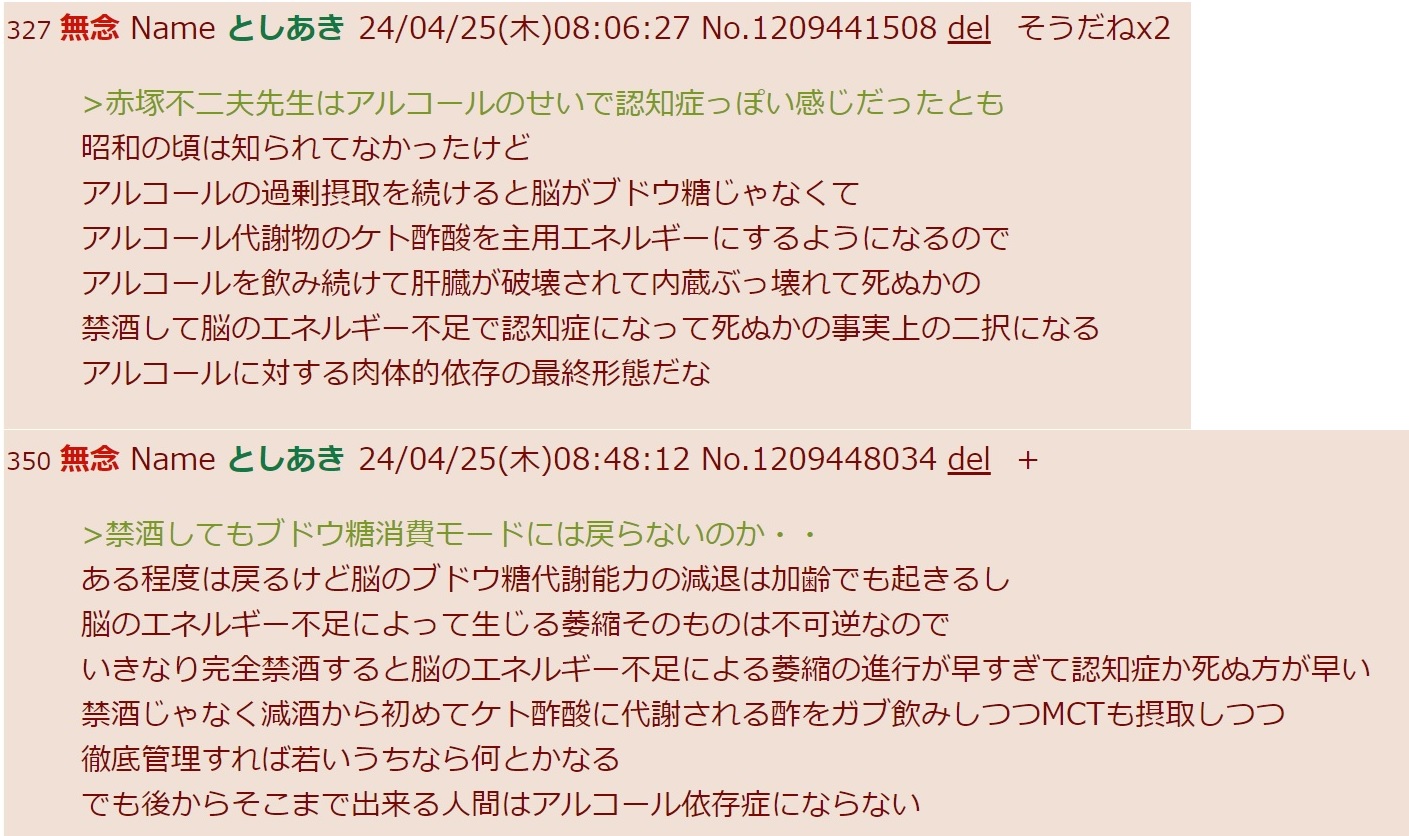 | … | 50無念Nameとしあき26/03/27(金)01:11:04 IP:126.55.*(bbtec.net)No.1396586537+>遺伝と生活習慣にも寄るけどそろそろなんか症状出てきてもおかしくないしな |