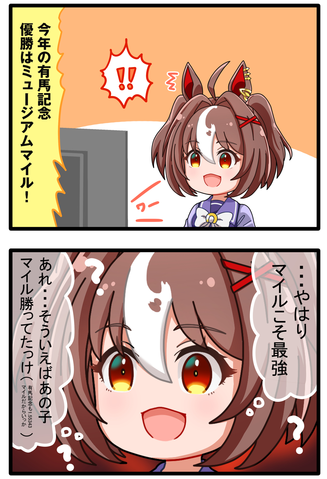 | … | 56無念Nameとしあき26/03/27(金)06:08:27No.1396600814そうだねx8 1774559307487.png-(58091 B) >今回は中距離だからマイルちゃんの出番は1ミリもないよ |