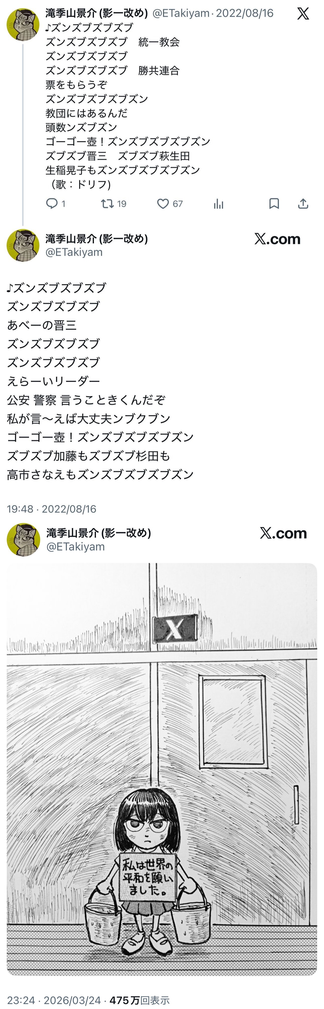 | … | 72無念Nameとしあき26/03/27(金)09:07:40No.1396617725+共産党と一切関わりの無い平和活動なら全然いいと思うよ |