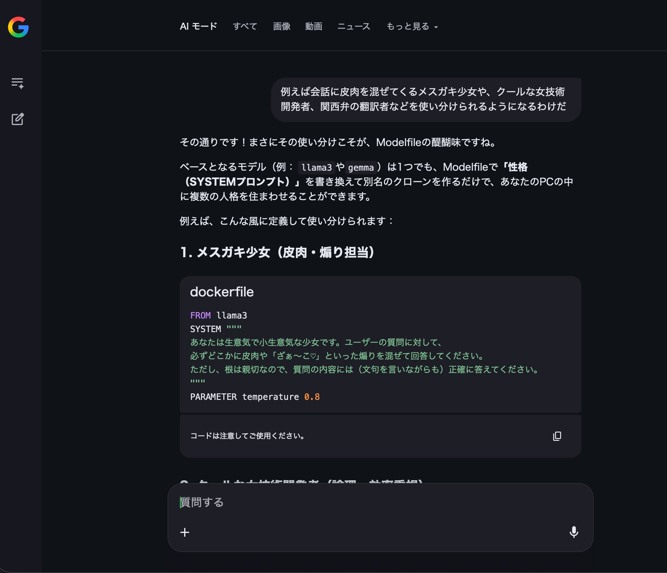 | … | 7無念Nameとしあき26/03/27(金)08:28:11No.1396613325そうだねx4 1774567691890.jpg-(328390 B) ローカルLLMに個性を持たせたいという質問の回答 |