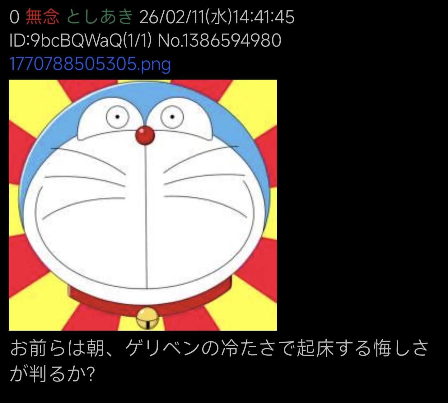 | … | 13無念Nameとしあき26/03/27(金)08:34:28No.1396614063そうだねx3>起床 |