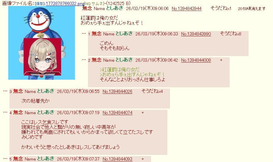 | … | 15無念Nameとしあき26/03/27(金)08:35:26No.1396614162そうだねx1 1774568126049.jpg-(184449 B) >脳内に二次元嫁が何人もいるんだよきっと |